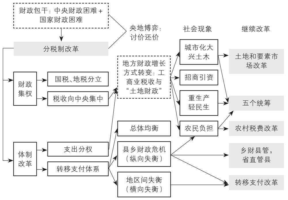 分税制改革让中央财政拿走大头,但事情还是得地方来办,支出压力增大。财权和事权不匹配,需要进一步改革。