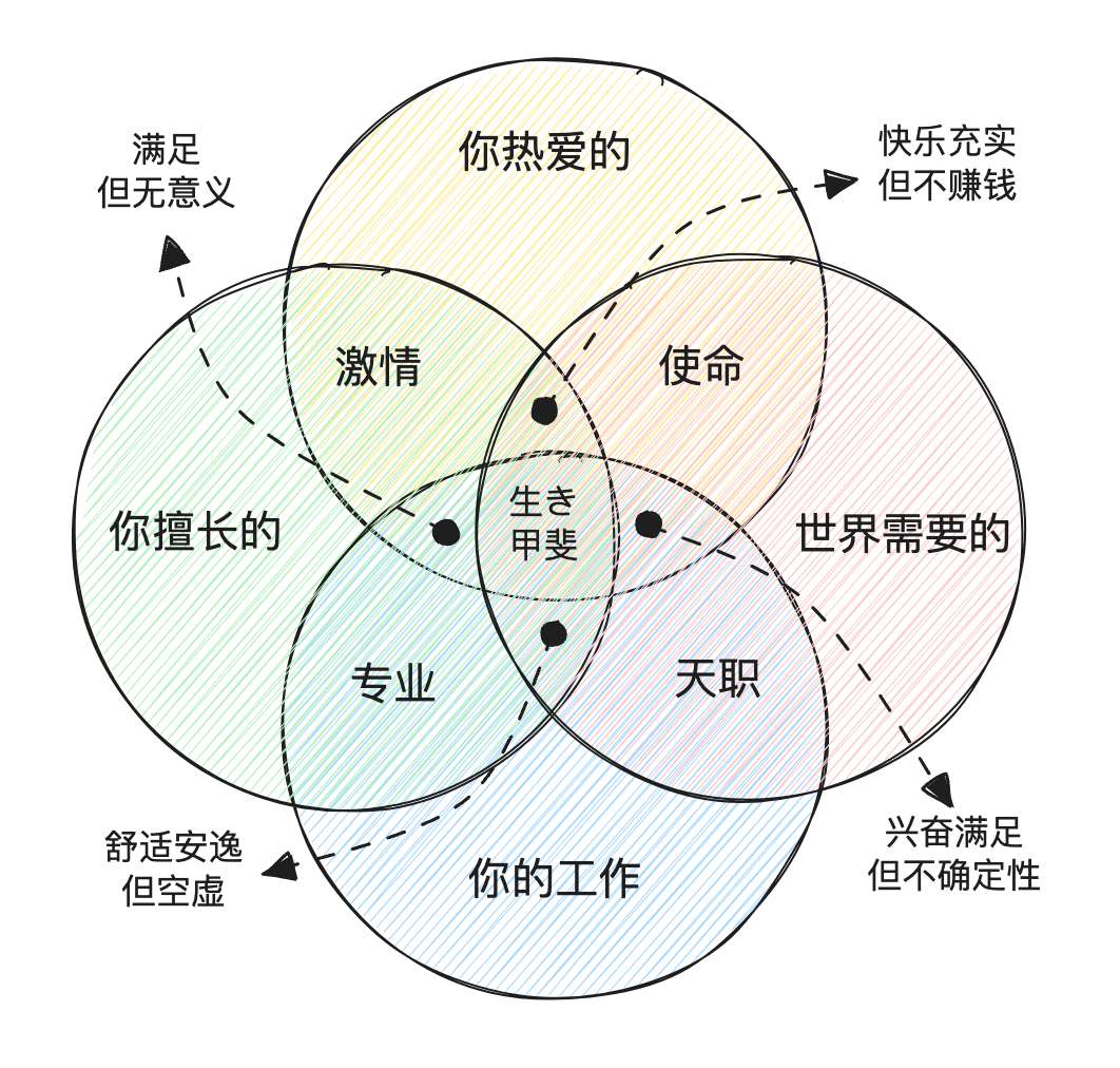 - 热爱 x 有工资 x 世界需要 = 兴奋、满足,只是总会有面对不确定性的不安全感